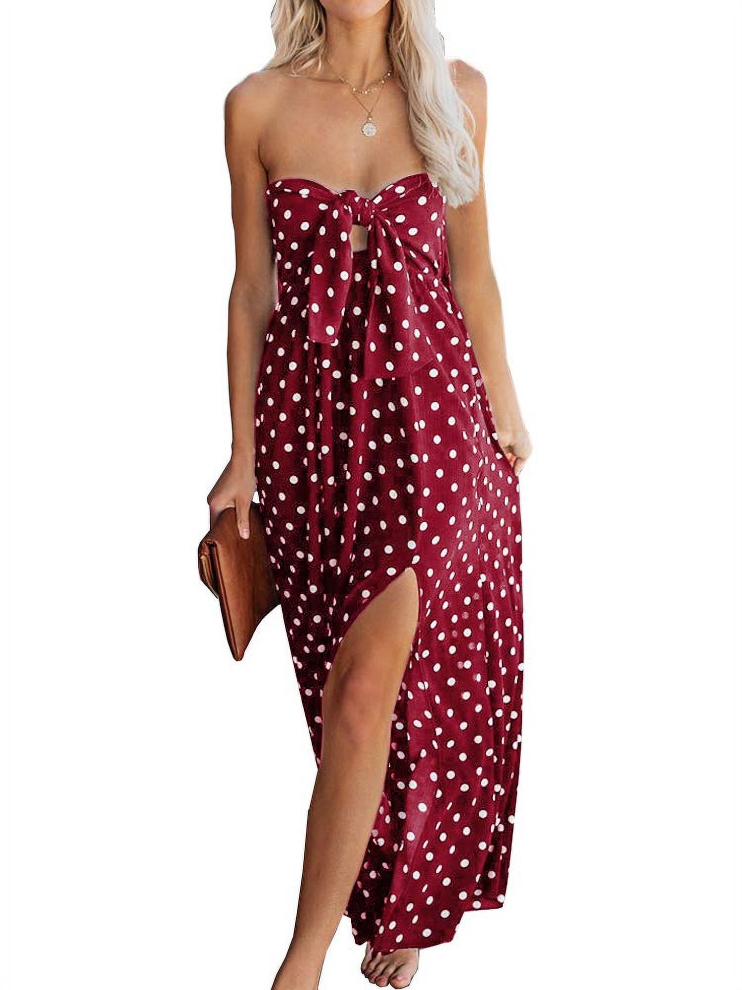 Womens Polka Dot Strapless Maxi Dress Tie Knot Bandeau Split Summer Beach Party Long Tube Dresses Walmart Com